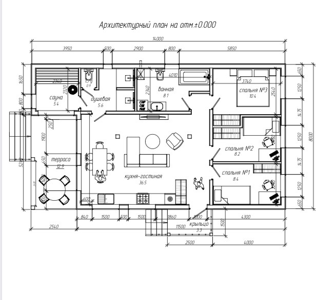 Терраса объединена с крыльцом и укроет от дождя и снега в непогоду.