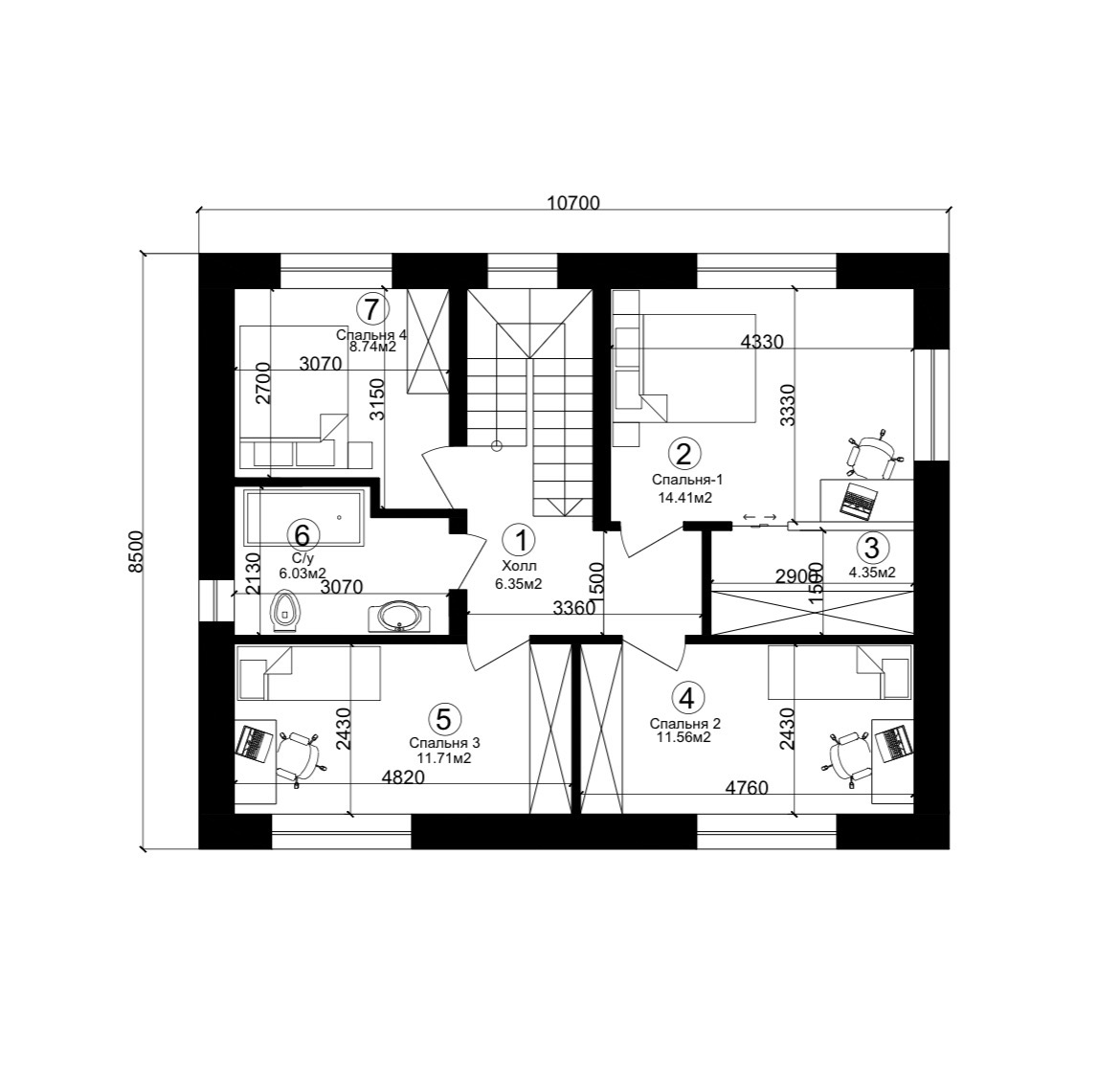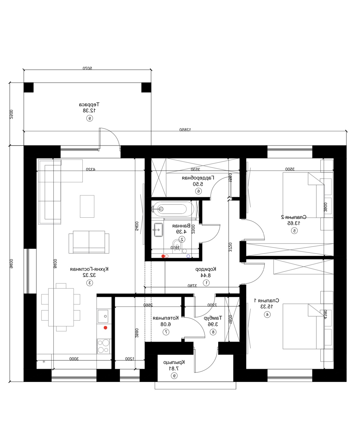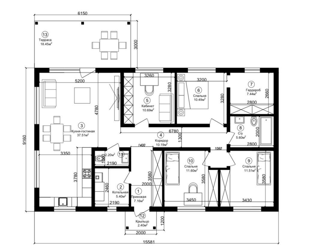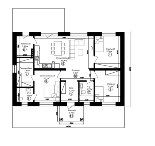 Дом спланирован таким образом, чтобы поделить его на удобные и функциональные зоны без лишних углов и поворотов.